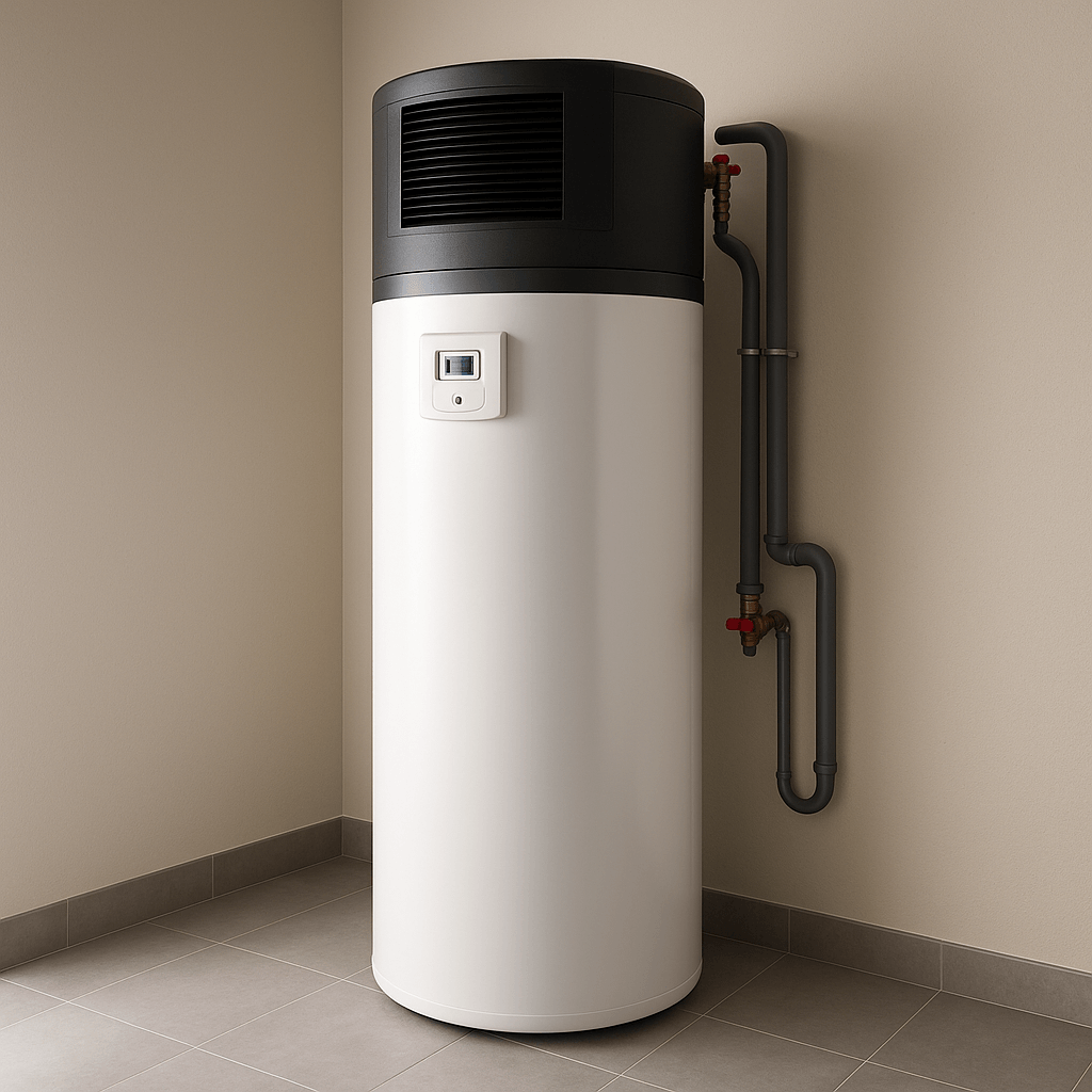 Le ballon thermodynamique chauffe votre eau grâce à une pompe à chaleur intégrée, en consommant très peu d’énergie.